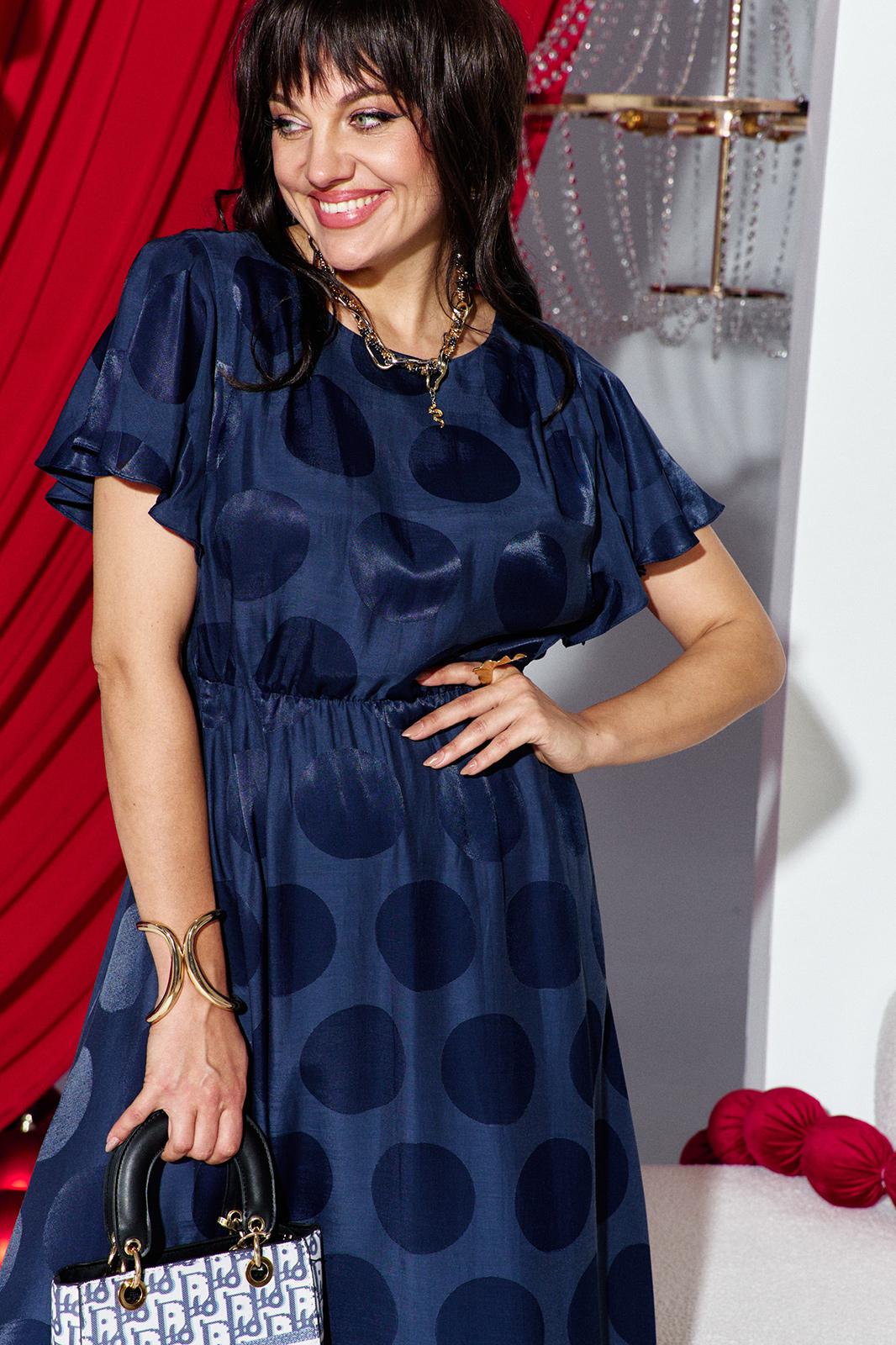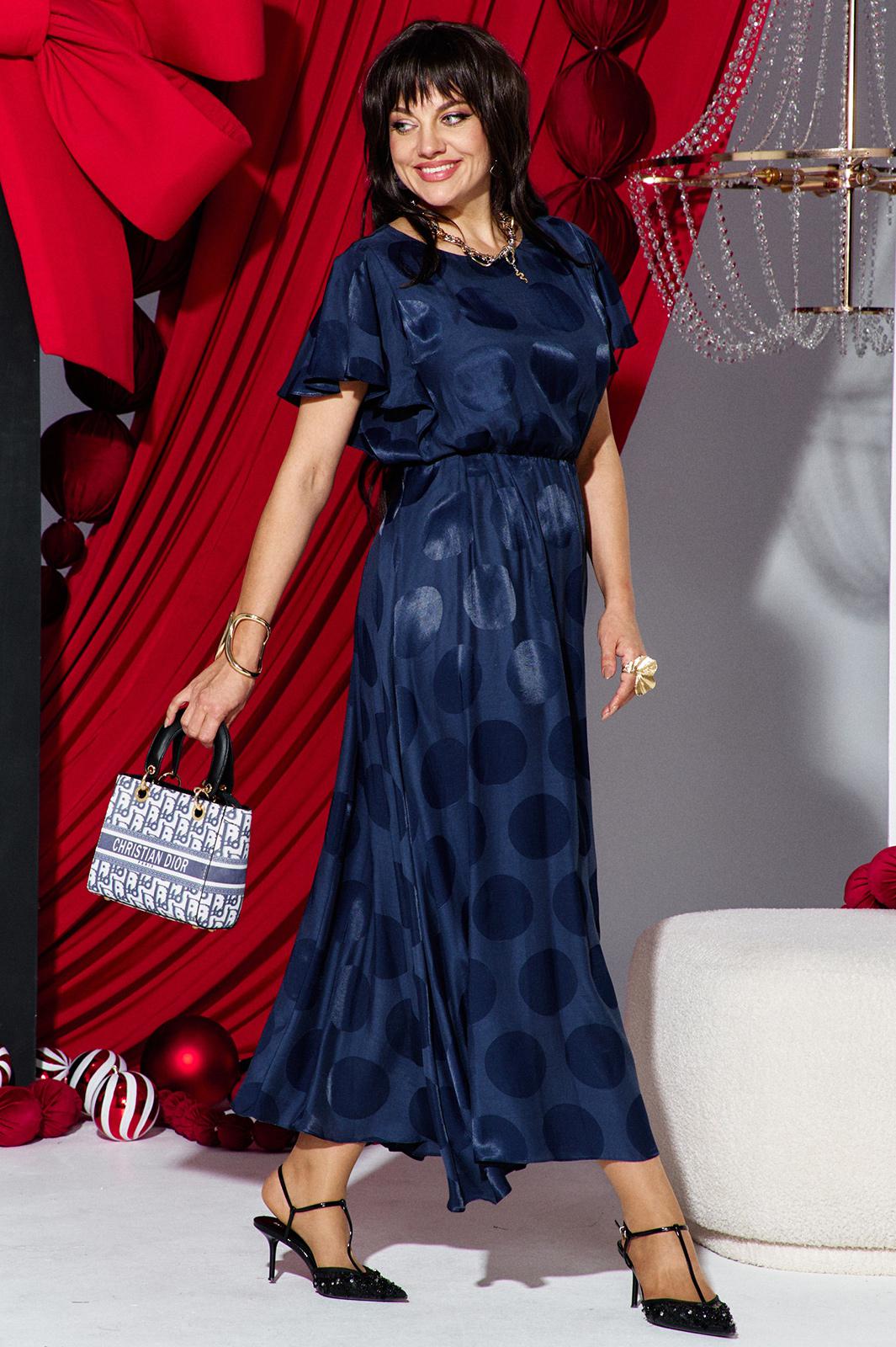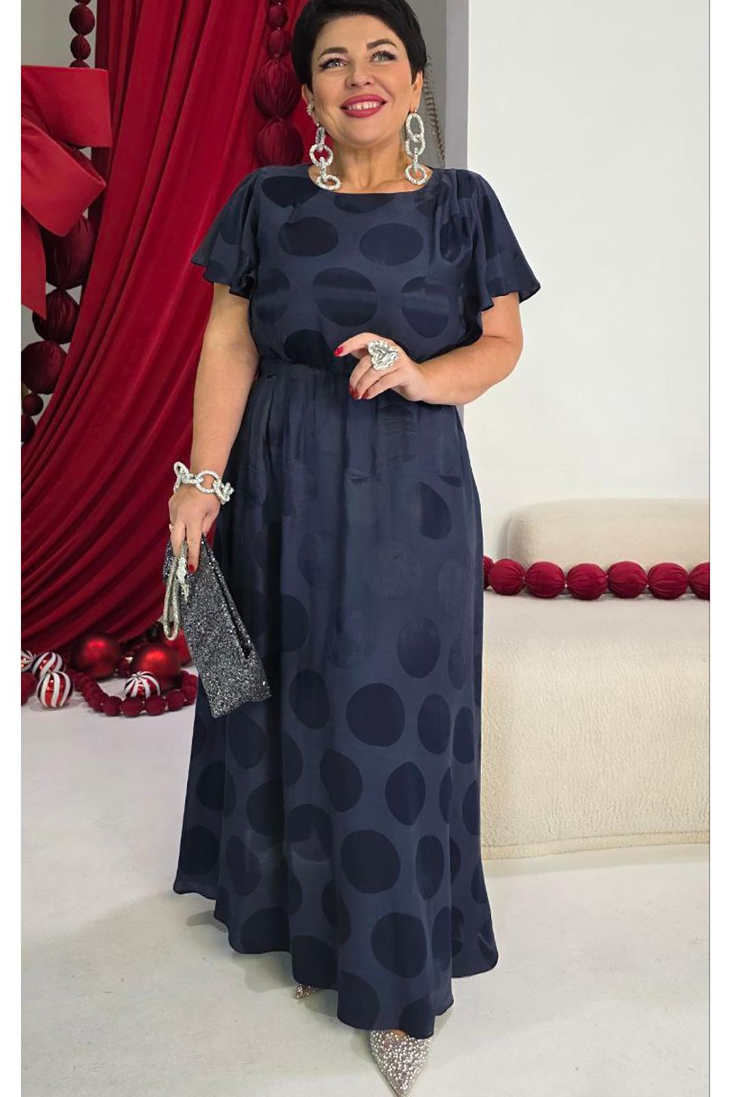 Платье для торжественных случаев в романтическом стиле из натуральной вискозы в сочетании с хлопковой нитью. Платье приталенного силуэта по геометрическому подобию напоминает трапецию, расширяющуюся к низу. Пластическая форма мягкая, плавная. Платье отрезное по линии талии. По лифу выполнены конструктивно-декоративные вертикальные подрезы от линии плеча до талии, а также застроченные складки у линии талии, направленные к плечу. По спинке в среднем шве выполнена застежка на петельку и пуговицу. Прилегание по талии достигнуто конструктивным подрезом, а также резиночкой. Плечевой пояс наклонный, мягко оформленный рукавом-воланом, выходящим из подреза лифа. Участок плотного прилегания по линии талии находится немного выше естественного уровня. Платье расширено по линии низа. Пройма по глубине и ширине умерена с характерным оформлением для комфортной эксплуатации. Покрой рукава короткий и приближен к волану. Стильное платье макси с идеальной посадкой по фигуре в тренде сезона подчеркивает женский элегантный образ. Платье удобное, современного фасона выполнено из качественных материалов. Вечернее платье станет идеальным вариантом для выхода в театр, концерт, торжественное мероприятие, фотосессию, вечеринку, торжественный вечер. Платье великолепно будет смотреться в ресторане, на юбилее, свадьбе, приеме, вручении премии «Оскар», «Гремми». Платье можно надеть на выпускной, на великосветскую тусовку. Длина платья 132 см, длина рукава 19 см.