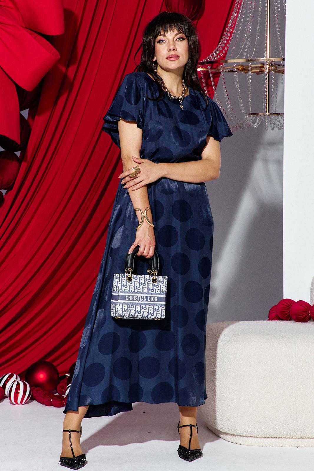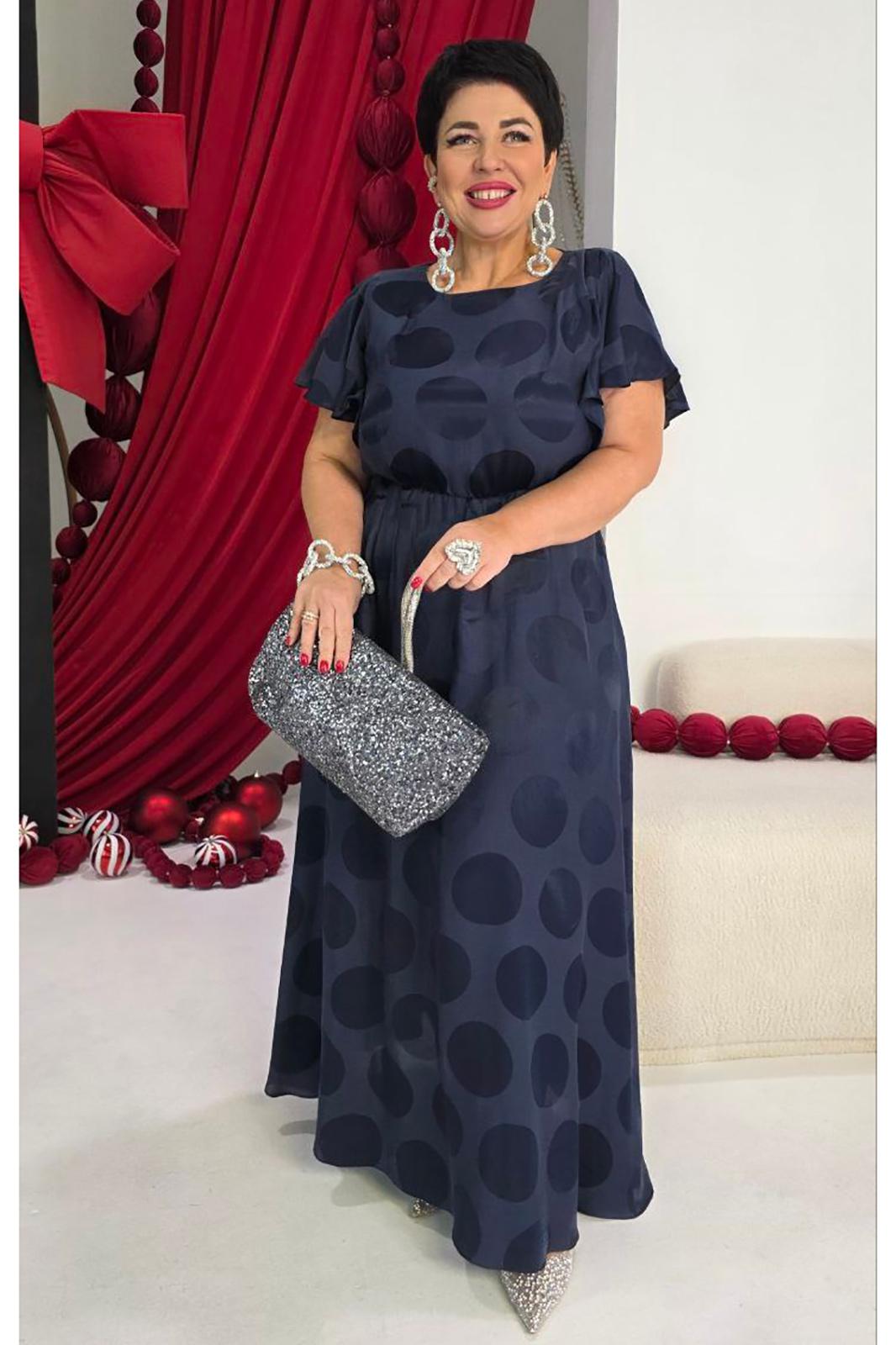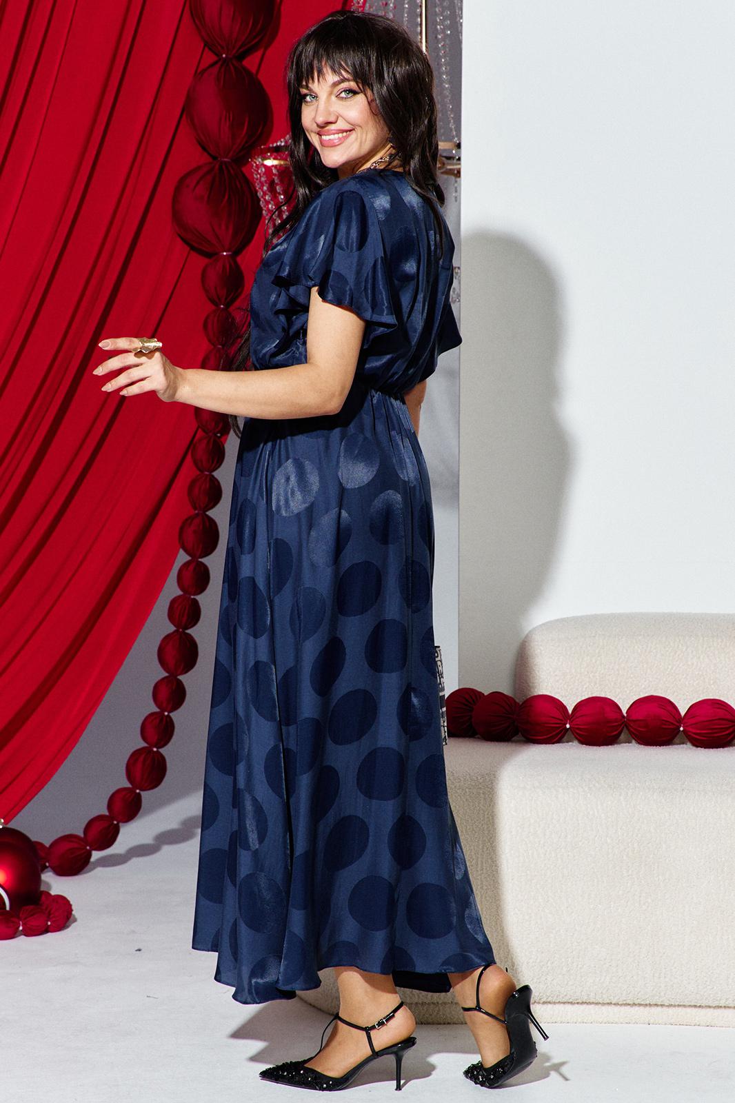 Платье для торжественных случаев в романтическом стиле из натуральной вискозы в сочетании с хлопковой нитью. Платье приталенного силуэта по геометрическому подобию напоминает трапецию, расширяющуюся к низу. Пластическая форма мягкая, плавная. Платье отрезное по линии талии. По лифу выполнены конструктивно-декоративные вертикальные подрезы от линии плеча до талии, а также застроченные складки у линии талии, направленные к плечу. По спинке в среднем шве выполнена застежка на петельку и пуговицу. Прилегание по талии достигнуто конструктивным подрезом, а также резиночкой. Плечевой пояс наклонный, мягко оформленный рукавом-воланом, выходящим из подреза лифа. Участок плотного прилегания по линии талии находится немного выше естественного уровня. Платье расширено по линии низа. Пройма по глубине и ширине умерена с характерным оформлением для комфортной эксплуатации. Покрой рукава короткий и приближен к волану. Стильное платье макси с идеальной посадкой по фигуре в тренде сезона подчеркивает женский элегантный образ. Платье удобное, современного фасона выполнено из качественных материалов. Вечернее платье станет идеальным вариантом для выхода в театр, концерт, торжественное мероприятие, фотосессию, вечеринку, торжественный вечер. Платье великолепно будет смотреться в ресторане, на юбилее, свадьбе, приеме, вручении премии «Оскар», «Гремми». Платье можно надеть на выпускной, на великосветскую тусовку. Длина платья 132 см, длина рукава 19 см.