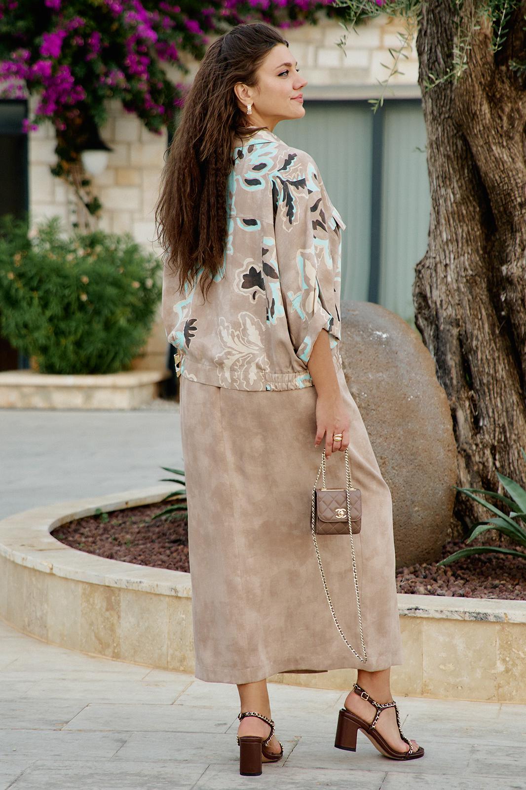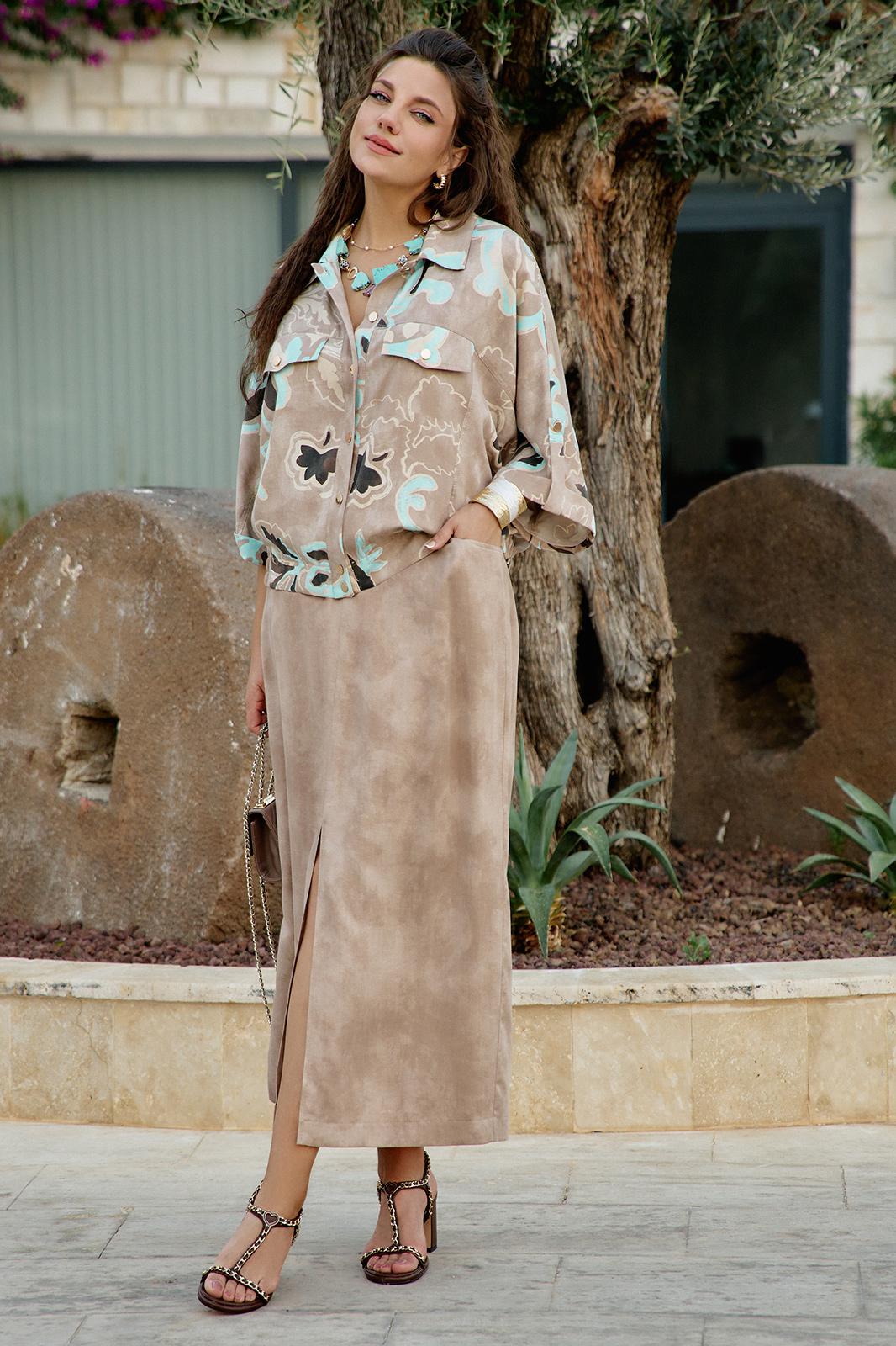Эта юбка длины миди, выполненная из стопроцентного тенсела, воплощает в себе эстетику «жидкого золота». В глубоком бежевом оттенке материал обретает особую магию. Бархатистая текстура тенсела дарит коже исключительный комфорт, делая эту вещь воплощением современной женственности, где чувственность встречается с безупречным удобством. Юбка длины миди с разрезом в среднем шве по переду. Пояс в юбке притачной с эластичной тесьмой-резинкой, которая обеспечивает максимально удобную посадку на любой тип фигуры. По переду юбки наклонные карманы. Варианты стилизации: для утонченного монохромного образа дополните юбку трикотажным топом или кашемировым джемпером в оттенках бежевого, песочного или кремового. Такое сочетание фактур — гладкого тенсела и уютного трикотажа — создаст визуально дорогой и гармоничный ансамбль. Завершите наряд мюлями на небольшом каблуке и минималистичными золотыми украшениями, которые подчеркнут теплоту карамельного цвета. В рамках делового, но расслабленного дресс-кода юбка идеально подружится с объемной белой рубашкой мужского кроя из плотного хлопка. Расстегните верхние пуговицы, слегка закатайте рукава и заправьте рубашку внутрь, чтобы акцентировать талию. Кожаные лоферы и структурированная сумка-тоут добавят образу строгости, сохраняя при этом общую мягкость и грацию. Для создания дерзкого контраста в стиле гранж-шик сочетайте карамельное миди с графичной футболкой и кожаной косухой. Грубые ботинки на массивной подошве подчеркнут хрупкость и нежность ниспадающей ткани. Этот вариант идеален для городских прогулок, когда хочется выглядеть элегантно, но при этом чувствовать себя свободно и уверенно. Длина юбки 90 см.