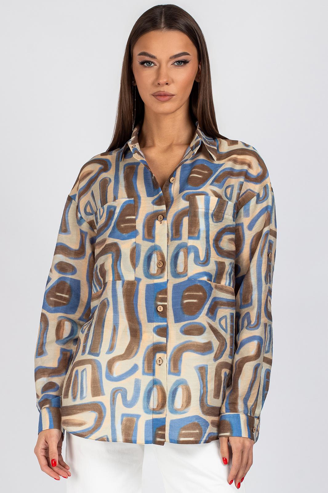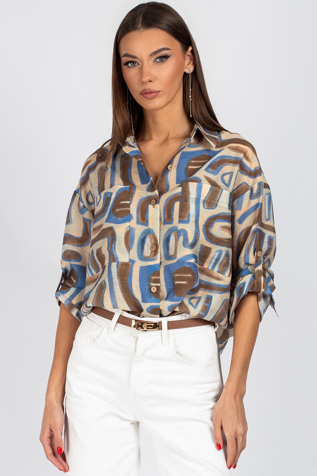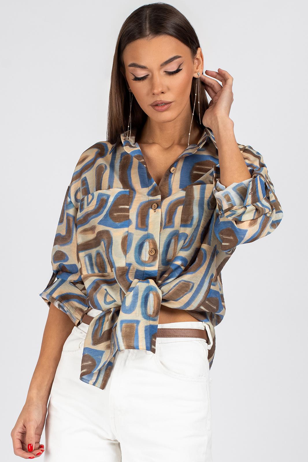 Блузка-рубашка женская, прямого силуэта со спущенным плечом.