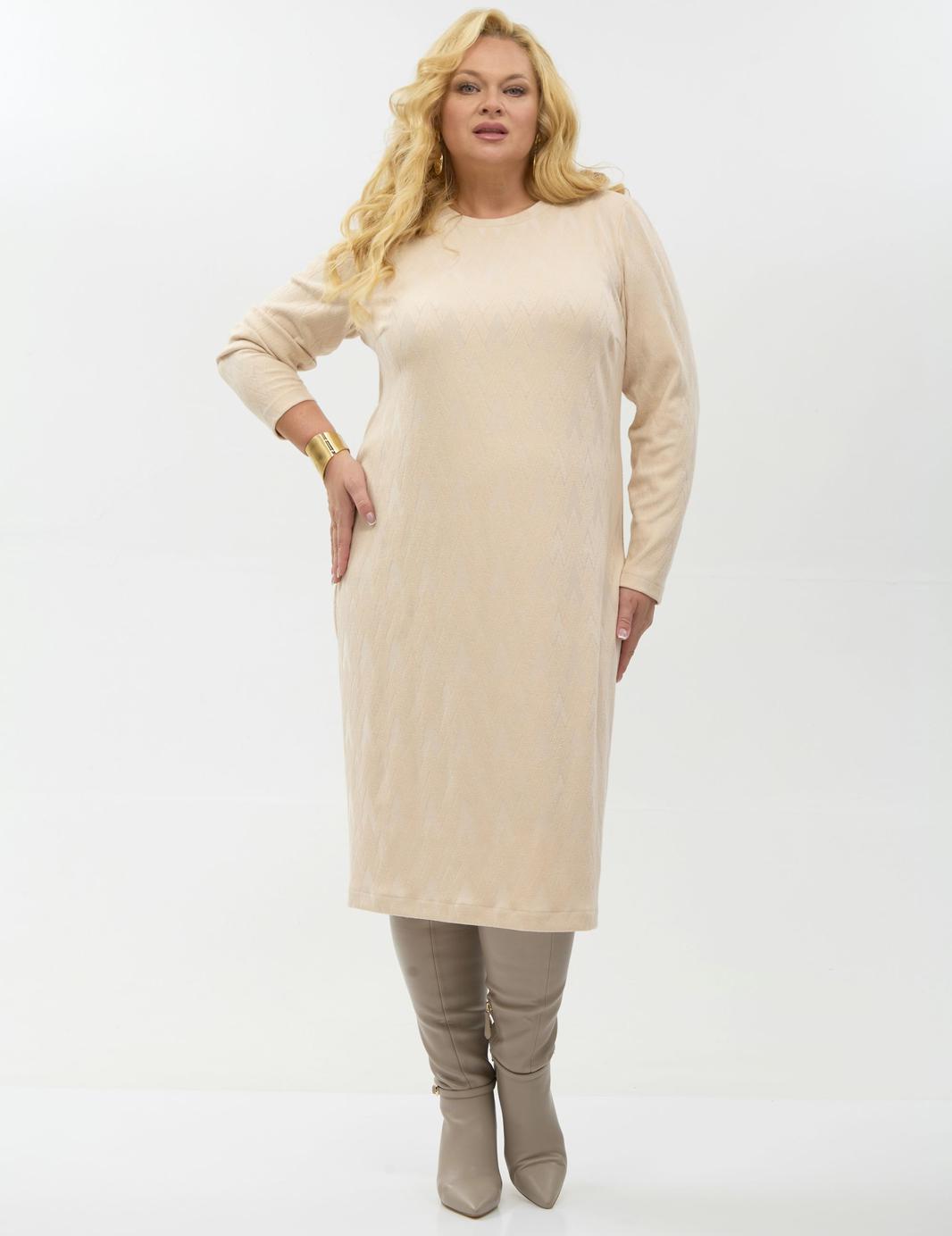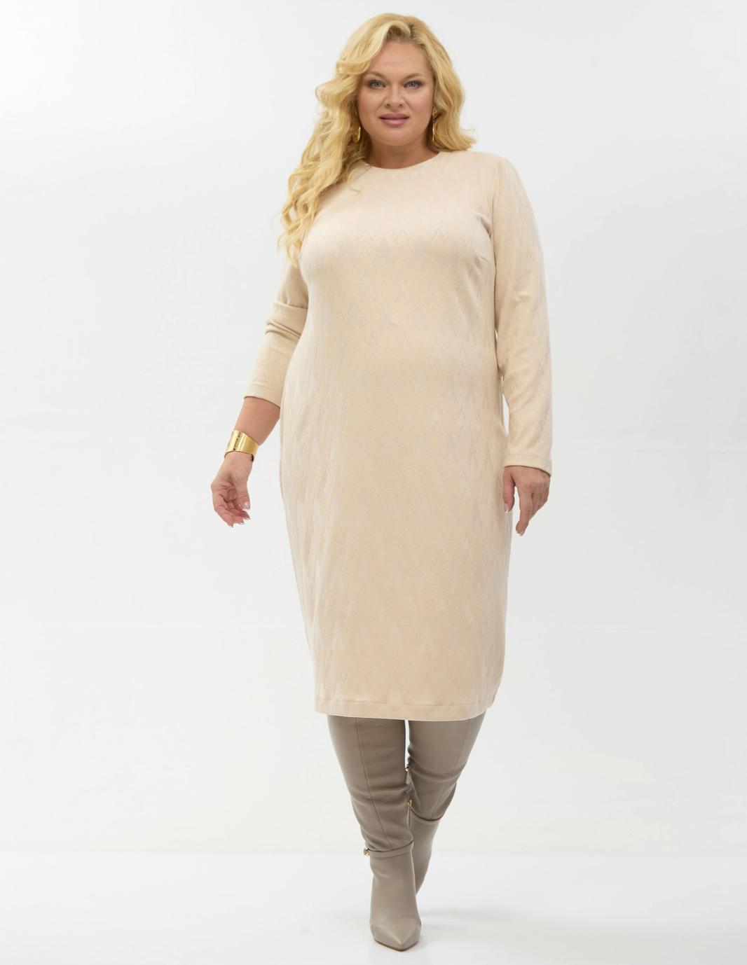 Платье прямого силуэта изготовлено из трикотажного полотна. Горловина округлая. Рукав втачной. Длина рукава для роста 164 см 59 см , для роста 170 см 61 см. Длина платья от плеча по спинке для роста 164 см 112 см, для роста 170 см 115 см. Мягкая, приятная на ощупь ткань подарит ощущение комфорта на протяжении всего дня.