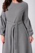 Платье отрезное по линии талии, с расклешенным низом. В боковых швах платья расположены карманы. Горловина округлая. По спинке потайная молния. Рукав втачной с декоративной нижней частью. Низ рукава собран на эластичную тесьму. Длина рукава от плеча для роста 164 см 60 см, для роста 170 см 63 см. Длина платья от лнии талии для роста 164 см 80 см, для роста 170 см83 см. Пояс из основной ткани в комплекте.