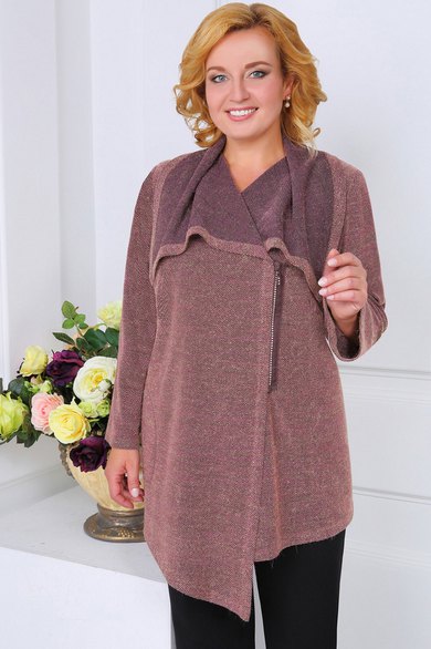 Кардиган прямого силуэта, с нагрудными вытачками, карманами в боковых швах, запахом и застежкой «молнией». Рукав втачной одношовный. Воротник цельнокроеный типа «апаш».