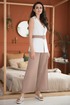 Этот комплект станет прекрасным вариантом как для деловых встреч, так и для повседневных мероприятий. Он подчеркнет чувство стиля и хороший вкус его обладательницы. Костюм женский двойка, состоит из жилета полуприлегающего силуэта и брюк “кюлотов”. Костюм предназначен для повседневной носки в летний период. В комплект к костюму идет застегивающийся пояс, который можно носить как с брюками, так и поверх жилета (пряжка пояса может изменяться по ширине и по фактуре).