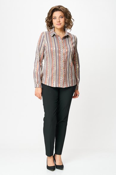 Комфортная женская блузка рубашечного типа из хлопкосодержащей ткани. Силуэт приталенный. Спереди вытачки. Рукав втачной длинный заканчивается манжетой с разрезом и застежкой на пуговицу. Полосатый винтажный дизайн придаёт рубашке праздничный вид. Модель блузки подходит на любой тип фигуры и на любой рост. Эта рубашка в полоску легко комбинируется с любыми вещами в гардеробе и подходит для различных мероприятий. Важно при выборе размера ориентироваться на личные замеры и соотнести их с таблицей обмерных данных в готовом виде, указанной в галереи фотографий. Именно так Вы подберете правильный размер и будете радоваться заказу. Чтобы перейти в общий каталог моделей, нажмите на иконку бренда в карточке товара. Все изделия производятся в Республике Беларусь на собственной фабрике.