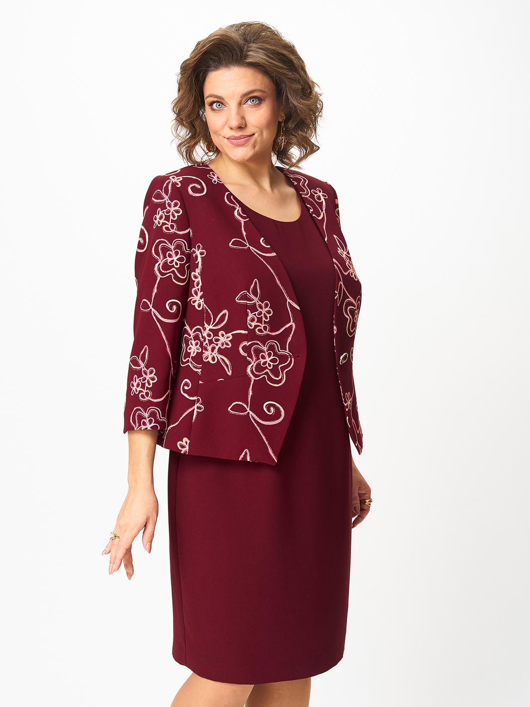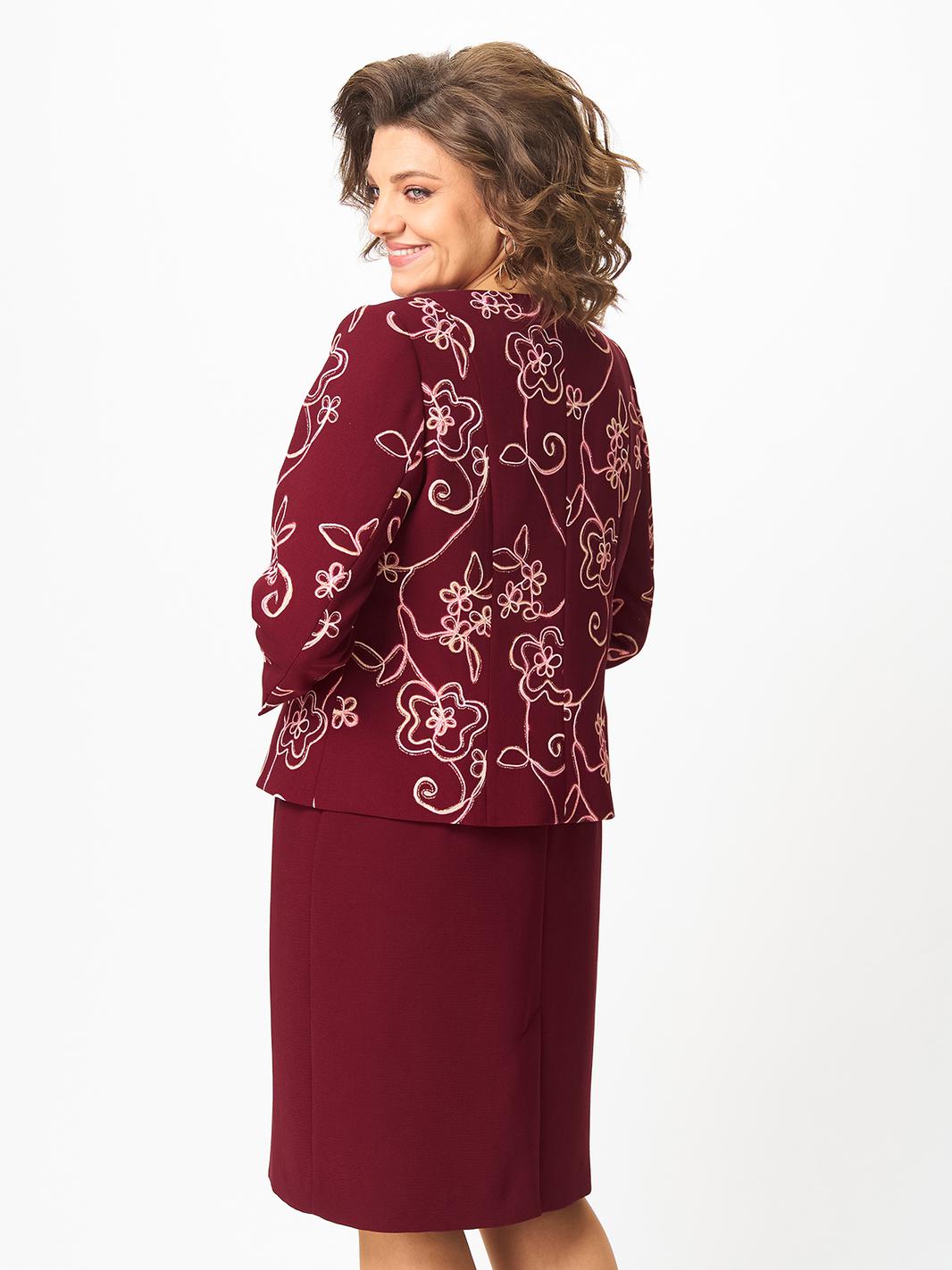 Жакет подобран в тон платья и гармонично собирает образ в единое целое, создавая особый стиль и позволяя трансформировать комплект из повседневного в праздничный.