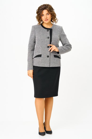 Повседневный трикотажный костюм из полотна собственного производства, состоящий из жакета и юбки. Он отлично подходит для осеннего и зимнего сезона и создает великолепный вид в вашем гардеробе. Жакет полу-прилегающего силуэта. Рукав втачной. По спинке средний шов, рельефы. Особенностью данной модели является асимметричная застежка. Костюм полностью на подкладке. Жакет костюма украшен клапанами, выполненными в одном стиле со своеобразной застежкой. Юбка прямого силуэта. В поясе, по бокам от вытачки до вытачки с эластичной лентой. На заднем полотнище юбки средний шов со шлицей и застежкой на пуговицу и молнию. Пуговицы могут отличаться от представленных на фото. Костюм подчеркнет вашу индивидуальность, хороший вкус, и подарит вам комфорт на протяжении всего дня. Пожалуйста, внимательно изучите таблицу с размерами, предоставленную на фото, для того, чтобы подобрать нужный костюм и радоваться заказу! Чтобы перейти в общий каталог моделей, нажмите на иконку бренда в карточке товара. Все изделия производятся в Республике Беларусь на собственной фабрике. Мы будем рады вашим отзывам и рекомендациям, благодаря им мы становимся лучше! Спасибо, что выбираете Zlata!
